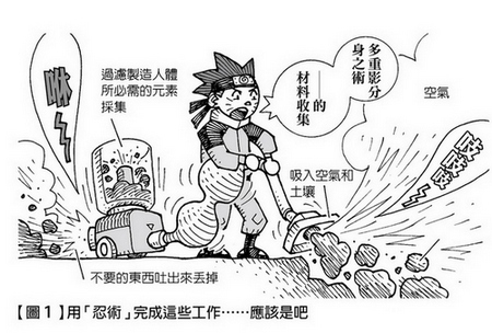 好吧,就當鳴人能用忍術將人體必需的元素平穩地收集,但接下來是必須將這些材料做成胺基酸和脂質等原生質。