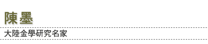 陳墨,原名陳必強,安徽省望江縣人,曾任教師、編輯、記者等職,現為中國電影藝術研究中心研究員。人不似名,陳墨絕不沈默,其立論功力頗受金庸推崇。他擅長以中國傳統的「回評」形式,一新讀者耳目,玩味於金迷心間。回評,是由中國傳統小說評點的形式中衍生。它不僅具體、細緻,而且自由、活潑。最重要的是,它能與讀者產生一種感性與直覺的交流。