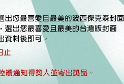 〈波西傑克森〉這套奇幻好書持續在世界熱賣,出版繁體中文版的遠流出版公司在2009年11月初《迷宮戰場》上市時,特別舉辦了〈波西傑克森〉封面選美大賽,希望讓台灣的讀者知道更多〈波西傑克森〉在世界各國的模樣,選美大賽共有622位人參加票選,經過了40天的激烈選戰後,最美麗的封面已經出爐囉,同時間遠流也想知道繁體中文版的書封哪一集最受到讀者青睞,特別安排選美大賽會外賽,將繁體中文的前4集進行票選,以下就是這次選美大賽的結果: