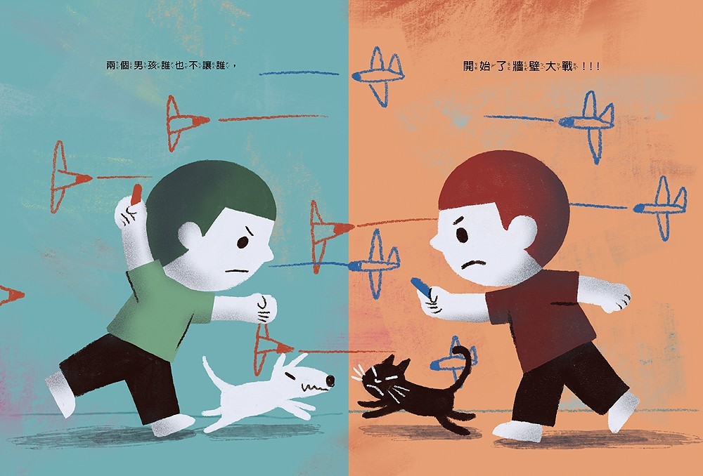 《牆壁大戰》 如果,誰也不讓誰,每個人都想自己畫滿所有的牆壁,世界會變成什麼樣子?! ★ 「豐子愷兒童圖畫書獎」得主林柏廷最新力作,一個以小見大的深刻寓言──以「牆壁(wall)」象徵「世界(world)」,在兩個男孩間的具體「小」衝突中,透過各種牆面塗鴉和一個又一個的窗景,呈現關於生活、教育、歷史、人權、自由vs禁錮、和平vs戰爭……等種種我們也許會稱之為「議題」,但其實是這個世界日常的一部分,藉此引發讀者產生聯想和對話 全書透過塗鴉牆壁來貫穿整個故事,看似無傷大雅的舉動,卻可能因為沒有節制的「隨心所欲」,加上周遭的縱容與無視,而引發「衝突/戰爭」,並造成難以收拾的混亂,這場「牆壁大戰」要如何落幕呢?……
