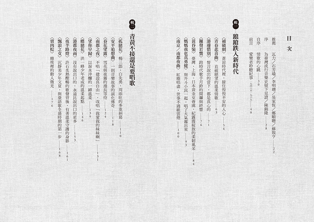 李明璁(社會學家、作家) 作為一個在學院教授音樂社會學十餘年、同時也致力於大眾流行音樂素養推廣的教育工作者,請容我不誇張地說:這本書太重要也太有趣了。重要的是,本書一方面將成為本土音樂史研究與教材的必備文獻;另方面有趣的是,它提供大眾重新認識臺灣流行歌曲緣起的相遇機會。謝謝芳怡,如此深入淺出、鉅細靡遺的書寫,這是一本充滿音樂之愛與本土情懷的精彩大作。