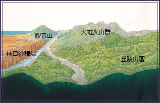 由於兩塊板塊的擠壓力量消失,轉而形成一股張裂力量,使得台北東側的丘陵向下滑落,形成凹陷的「台北盆地」;而西側的沖積扇卻相對抬高成「林口台地」。