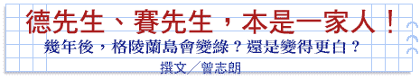 三年級生吐了口氣笑說:「我還以為你不會問呢!我正要告訴你一個令我頗為感動的例子。最近我讀了一篇文章,講的是格陵蘭島(Greenland)在往後幾年到底會變綠還是會變白?根據目前絕大多數專家與業餘科學人的看法,全球暖化的結果將使住在海岸線的居民陷入危機,因為暖化會使地球南北極的冰凍層融化,預計海平面在本世紀結束前將上漲77公分左右。海水漲、海浪高,當然對海岸線居民的居家安危造成威脅。的確,2002年格陵蘭島陸地上的冰層因地球暖化漸漸融解露出綠地,成為名實相符的「綠」島(Greenland)。這些證據使得大家更相信格陵蘭島有一天會被融解的冰水所淹沒。