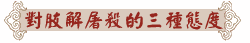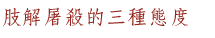 把肢解屠殺當作笑話來寫,在金庸小說之中並不多見。小時候讀過朱光潛先生的《對一株松樹的三種態度》,現在不妨一談,因讀金庸小說而對肢解屠殺所生的其中三種態度。