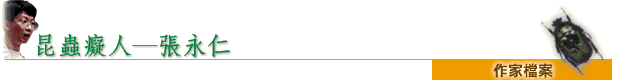 他經常獨自一人開著車,載著幾組攝影裝備,穿梭在山林野地間,尋找昆蟲的蹤跡,在家時,他可以一個禮拜不出門,只在房間裡做昆蟲標本、寫作、睡覺;有時打開冰箱,還可以看到未完成的昆蟲標本,和飲料、底片躺在一起。這位昆蟲癡人,就是深入台灣田野工作十餘年,《昆蟲入門》、《昆蟲圖鑑》作者,張永仁。