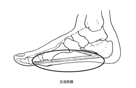 足底筋膜是一條帶狀的結締纖維組織,從腳跟延伸至前腳掌,形成足弓。健行或跑步的過程中,這條筋膜能協助支撐穩定腳部。站立時,足弓呈現扁平狀;起步時,腳跟上升,足底筋膜也跟著收縮,足弓彎曲,給予腳趾強勁的推進力道。但過度使用就容易引發所謂的足底筋膜炎。足底筋膜的某些纖維過度延伸,甚至於撕裂時,就會發炎。如果你的腳是扁平足、高足弓,或過度內旋的話,靠近腳跟的足底筋膜會很緊繃。跑步和健行所產生的衝擊和壓力,可能會壓扁、拉長,甚至撕裂部分足底筋膜。如果撕裂傷發生在跟骨附近,常連帶引發足跟骨刺。