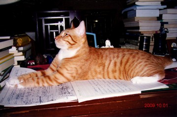 十一月就在家安居療養,除了躺臥擺平自己之外,都關在書房寫稿。老問題又來了,不甘寂寞的阿橘看我打開桌燈,雖然大書桌上已擺滿了書,燈光溫暖卻散發出不可擋的吸引力,牠縱身一跳,總會找到牠最舒服的位置,就橫身躺臥在我的稿紙上。有時我還得讓出大位,偏安一隅,極其委屈的寫稿。看牠頭枕郭象、成玄英,身跨王船山、宣穎,足蹈阮毓崧、王先謙,一身跨越千年傳統,一切已在這裡,一切可以放下,牠坐忘片刻,就夢為蝴蝶去了。牠沒有學究天人,至少已身通古今,是否「成一家」,就看牠的主人能否「虛室生白」而「吉祥止止」了。心「無何有」,生發湧現的是深藏在字裡行間的道妙哲理,而人間美好就依止於筆觸書寫的「希微」聲中。整整一個月足不出戶,寫出了〈應帝王〉、〈秋水〉與〈天下〉三篇,十一月二十九日終告完稿。