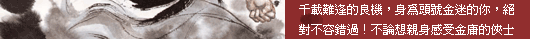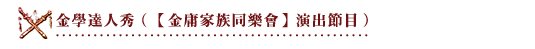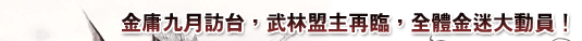 | 金迷的「金學造詣」只能表現在作文書評上嗎?才不呢!【金庸家族同樂會】要徵召武功高強又具創意的金迷,一同來比武炫技! |