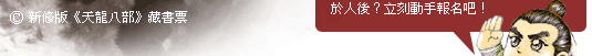 為讓讀者貼近金庸、親切互動,嚴格限量入場。有意參加【金庸家族同樂會】者,請以精簡300字,寫下「我對金庸修訂自己小說的看法」,並剪下《中國時報》浮世繪版上的「武林帖」(影印無效),填妥後連同「我對金庸修訂自己小說的看法」一併寄出(以郵戳為憑),9月12日前寄至100台北市南昌路二段81號6樓/遠流出版公司企劃部,信封收件人欄請加註「金庸家族同樂會」字樣。勝出者可獲贈設計精美、深具收藏價值的珍貴入場券兩張,以及每人一份現場見面禮。 |