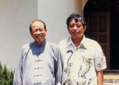 與友人前味全董事長黃烈火(左)合影,約1984年