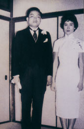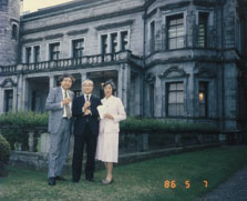 戴國煇夫婦與商業界友人渡邊德二(中)合影,攝於三菱重工位於東京開東閣的迎賓館,1986年5月7日