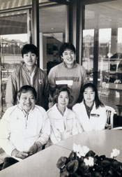 全家合影於日本網球場俱樂部。前排左起:戴國煇、林彩美、長女戴興夏;後排左為次男戴興寧、右為長男戴興宇,1988年4月
