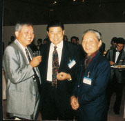 於「亞洲展望公開研討會第四屆京都會議」餐宴上,左起:戴國煇、曾永賢、鍾肇政,1992年11月7∼9日