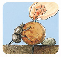 1.回家半路上,一根針從天而降插住了糞球。這時候,糞金龜怎麼辦?