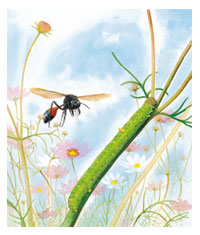 2.青蟲又肥又美又大,泥蜂媽媽要把寶寶放在哪兒用餐呢?