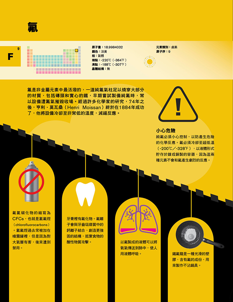 鹵素也就是17族,只有這一族囊括了室溫下3種主要狀態的元素:氣態 (氟和氯)、液態(溴)、固態(碘、砈),而且都是非金屬。