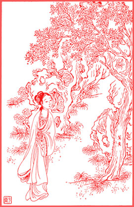 純由少女組成的戲班,根本也無機會認識其他男性。賈薔十七、八歲,相貌極美,對齡官百依百順,柔情繾綣。讀者都記得第三十回,齡官蹲在薔薇花架下寫著一個一個「薔」字的痴情美麗畫面,然而賈薔與齡官最動人的一段故事,應該在第三十六回。