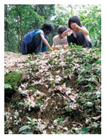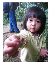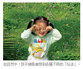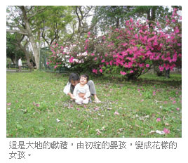 氣候果真變了,受到全球暖化的影響,今年台北的杜鵑花海,就跟日本的櫻花一樣,都比預期的時間提前報到。台大校園在假日仍然不減人潮,許多人攜老扶幼前來觀賞杜鵑。荳芽姊妹也開心地在花海中尋寶,滿地的通泉草與黃鵪菜也引起她們的關注,我記得荳荳念幼稚園時,最喜歡玩點餐的遊戲,她總是問我:「媽媽妳想吃什麼?」不論我隨口說了什麼菜名,她一定可以變得出來。因為她會找一片葉子,放上五顏六色的小花瓣小果子,就成了一道道美味可口的佳肴(果真是秀色可餐啊),這時她會非常得意地把自己精心設計的「作品」放在你面前,然後我就會 很驚喜地說:「哇,太好吃了。」還要假裝埋頭猛吃,接著抹抹嘴,看女兒露出滿足的笑臉。這個遊戲一玩就是好幾年,我一直覺得這是美術教育的起點,因為自然中各種有趣的素材,給了孩子無數發揮想像力與創作力的來源。加上這年紀的孩子是如此的「專注」,他們全心全意地投入在自己的作品中,那種快樂與成就感,是許多成人無法理解的,難怪有人說:「五歲孩子泡的茶最好喝。」不過對現在的荳荳來說,最好的「玩具」就是妹妹,她喜歡用花來裝扮妹妹,也喜歡帶妹妹去認識那些在妹妹出生前,曾帶給她無數快樂的小花小草。