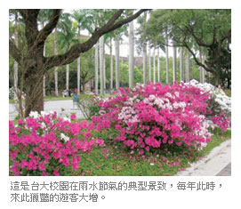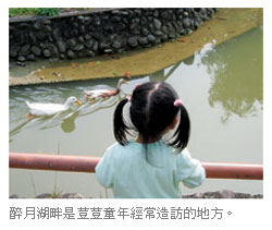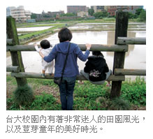 而台大校園則是另一片存在於塵囂中的綠寶石,也是我家的後花園,這裡的幅員廣闊,有湖泊池塘,有田園老樹,還有面 積大到可以踢足球、翻滾跳躍的大草坪與充滿各種探險野趣的荒地角落。我喜歡帶孩子來這裡騎腳踏車,聞著割草後的綠草香,撿拾滿地墜落的楓香果實,以及各種可以作為扮家家酒的基本「食材」。