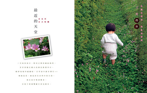 那時杜鵑仍含苞待放,但是野花已開得繽紛熱烈,荳荳穿梭在嬌小的紫花酢漿草中,與其說是花仙子,更像是小巨人。她神氣地四處顧盼,在草浪中踏步潛行,當時的她可能對花並沒有太多感覺,因為她就是花,就是活在自然中的小苗。而我像是離開五線譜的音符,為了尋找亙古的旋律,我學習重新發現,重新聆聽,我在花中嗅到驚喜,在孩子澄澈雙瞳中看見傳奇。我反覆咀嚼一種遺忘的滋味,而她卻完全融入所有的詩句裡。