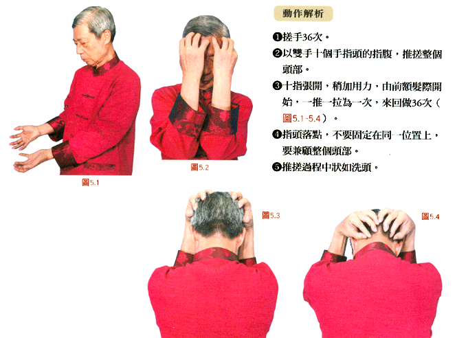 梳頭功──上班工作繁忙壓力大,時感頭暈不適,做完梳頭功不再頭暈,且洗頭時發現掉髮量減少了(希望勤練習之下白髮會漸漸變成黑髮)。