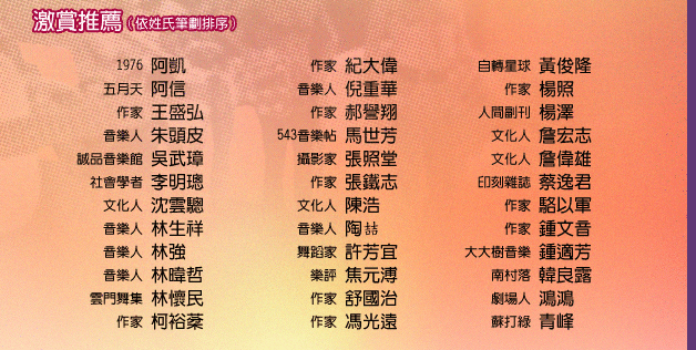 ◆主講:段鍾沂(滾石唱片公司董事長)、張鐵志(政治與文化評論人)