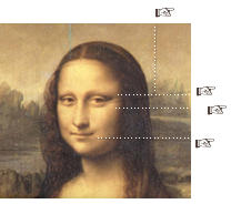 神祕的微笑 蒙娜麗莎微笑的秘密是什麼?顯然我們永遠都不會知道。但是,這兩種風景和它卻有點關聯。左邊的風景有將左眼向下拉的傾向,而右邊的風景卻有將右眼往上推的態勢。這種視覺上的拉和推在「蒙娜麗莎」畫面中央會合,致使眼睛「看」到嘴角的一絲顫動。這個顫動給人一種感覺,彷彿她即將要突然笑開來! [back]  |