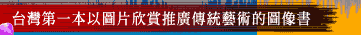 《台灣傳統藝術之美》是由國立傳統藝術中心策劃,遠流出版公司編輯製作,全書涵蓋台灣六大主題,包括戲曲之美、音樂之美、建築工藝之美、民間工藝之美、舞蹈之美及陣頭技藝之美等,精選台灣三十餘種最具特色、最常見,且與生活習習相關的台灣傳統藝術,以數百幀珍貴精采的圖像,及中英文對照說明,引領您品味台灣傳統藝術的饗宴。《台灣傳統藝術之美》是台灣第一本以平面圖像欣賞為主體,以美感的驗體驗來推廣傳統藝術的絕佳好書,也是您自我收藏或致贈外國友人的最佳選擇。