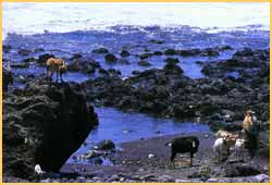 在蘭嶼,到處可見野放的山羊在海邊散步的獨特景觀。