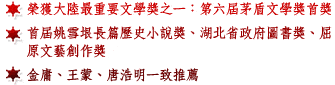 因為作者看到了他高度的政治智慧,能把行將崩潰的明王朝又支撐了六十年。也看到了他鮮明的人格特質--機會不成熟,他有超常的忍耐力;機會一旦成熟,他又有超常的擔當力。因此,熊召政不寫秦始皇,漢高祖,諸葛亮,曾國藩......等偉大人物,而寫傑出的鐵腕宰相──張居正,透過他,我們也看到萬曆這個時代,以及這個社會難以觸及的各個面相。