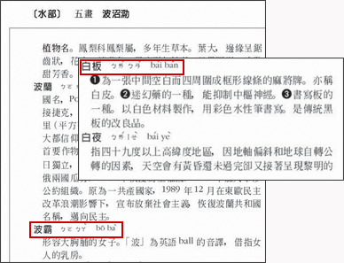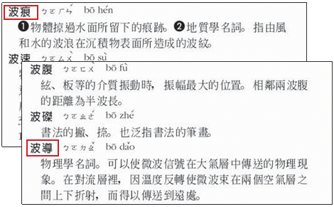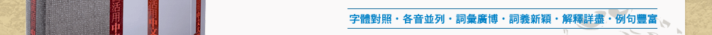 每一字詞皆詳列釋義。詞語有多義者,先解釋本義,後及引申義、借用義等。並適當的徵引典故出處,或標示語意衍生之本源,能深入理解字義。 |