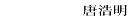 唐浩明,湖南衡陽人,生於一九四六年,文學碩士。 中華人民共和國政協委員,中國湖南省文史工作研究會副會長,中國作家協會會員。現任職岳麓書社,多所大學兼職教授,致力中國近代史料整理、出版、研究。創作長篇歷史小說《曾國藩》、《楊度》、《張之洞》,此三部小說被稱為「晚清三部曲」。