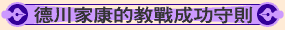 德川家康是日本經營者的最愛,主要原因在於他「以守為攻」。「守」是一切成功的關鍵,德川家康是決不冒高度危險,他反對"量"的擴大主義,全力強化充實內部的"質",這種低成本的經營手法正適合當前不景氣的時代,著重紮實的組織與政權的長期維持,即是德川家康「永續繁榮」的經營哲學。