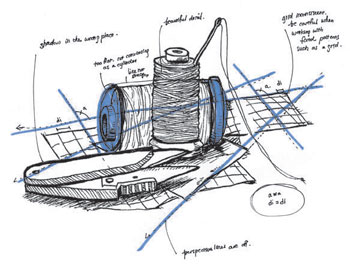 Pony亂七八糟的手寫字說: shadow in the wrong place. 陰影位置錯誤。 too flat. not convincing as a cylinder. 太平面了,圓柱體的特性不夠凸顯。 line not straight. 線不夠直。 beautiful detail. 細節好精美。 grid inconsistent. be careful when working with fixed patterns such as a grid. 格子不協調。要小心,畫格子這類固定的樣式要注意它的準確。 perspective lines are off. 透視線偏離。