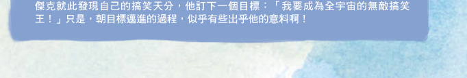 另一本《我是傑克,天才搞笑王》也描述了我小時候在學校經歷過的事,就是你明明知道在老師面前「乖乖的」便可以沒事,但你還是忍不住「搞怪」。你也知道下一刻因此要惹禍上身,卻意外觀察到老師們有異狀,然後你才慢慢發現,其實他們有另一個不是老師的身份存在。這個新發現讓你重新看待自己和大人的關係,也才知道原來上學這件事有好笑、溫柔與不為人知的一面呢!