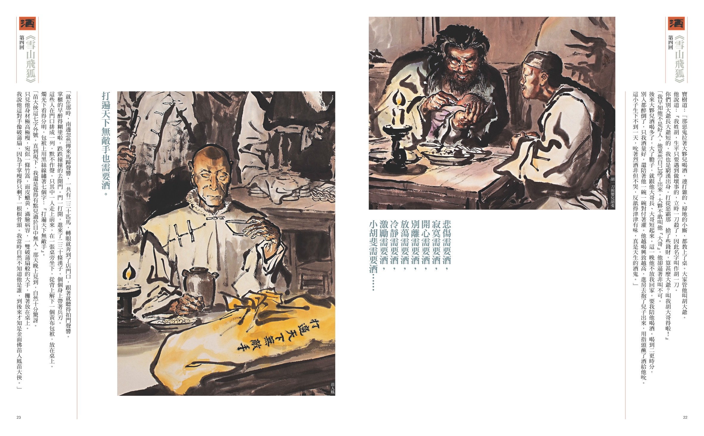 《金庸說部情節——董培新畫集》共收錄70餘幅畫作,橫跨金庸十五部小說,均取其膾炙人口的經典場景與人物。一般畫冊的版型多半為「左翻橫排」,《金庸說部情節——董培新畫集》則根據華人閱讀習慣,採用「右翻直排」方式編排,且在每一幅畫作之側,摘錄一段相對應的小說原文,透過圖文的相互對照,完全體現金庸小說中獨特且濃郁的古典蘊味!