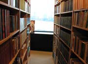 金庸的藏書室,儼然是個小型圖書館。貼窗那張海報上畫的,是漫畫版的小龍女。 |
