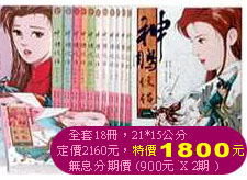 《神雕俠侶》古裝漫畫經典全套18冊,集集扣人心弦,章章刻骨銘心。請一齊來看楊過與小龍女聯袂大戰金輪法王;看楊過與小龍女生死相許的至情至愛;看黃展鳴生動的筆觸喚醒現代人的真摯情感與想像空間…現在訂購全套《神鵰俠侶》漫畫經典,即可獲得漫畫家黃展鳴精心繪製的楊過、小龍女明信片六幀(限量發行)機會難逢,敬請把握機會,切莫錯過! |
