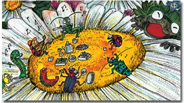 開花植物的世界是一個族群融合的世界,就像本書所繪,除了花之外,裡面還有許多的昆蟲、鳥類等,這是植物演化上的一大進步。當植物的種實藉由各種方式傳播,抵達目的地後,經過一段時間的蟄伏,看似萬籟俱寂,但一等春天到來,整個空間立刻充滿欣欣向榮的繁花;正如本書最後所繪,充分呼應了這個時代是開花植物的時代,每一寸土地都有它們的蹤跡。