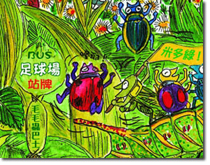 它的趣味,豐富而多采。譬如鍬形蟲到底是用頭頂球還是用手故意碰球犯規;鼠婦捲成一球,被當成球射進門去;而踢球的是獨角仙;守門的是螳螂……。在這球場上,每一隻昆蟲都透過足球這種運動來突顯他們本身的特性,也成為人類文化和昆蟲世界的另類接觸。