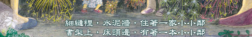 Q1. 「小小鄰」是什麼樣的生物呢? A1. 有點像人類又有點像蟲蟲的……小小生物。 Q2. 他們還穿著衣服,特別是爸爸和哥哥好像都戴著帽子? A2. 那不是衣服喔,那是身體的顏色和花紋。 爸爸和哥哥頭部的花紋是條紋狀的,媽媽和妹妹的頭 則是像瓢蟲的背部那樣硬硬黑黑的,並不是軟軟蓬蓬的毛。 Q3. 他們頭上那個像角的東西是什麼? A3. 那是和蟲的觸鬚一樣的東西,能夠判斷聲音的來源、聽見聲音之類的。 Q4. 那他們的腳呢? A4. 如果用顯微鏡仔細觀察,或許可以看見他們的腳像蟲蟲的腳一樣尖尖細細的。他們可以靈活的在地面、水溝蓋中行走, Q5. 平常他們都做些什麼事? A5. 他們最喜歡玩和動手做東西,四隻手指非常靈巧。他們背著種子包包行動,一邊收集種子,只要發現適合居住的新地方,