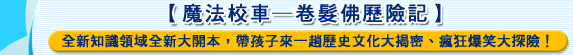 2007年,在魔法校車大大小小粉絲望穿秋水等待下,魔法校車又來囉!全新歷史人文領域、全新開本的【魔法校車系列─卷髮佛歷險記】,最受歡迎、最無厘頭的麻辣魔法女教師──卷髮拂老師,以及其精怪頑皮的班級同學們,將帶領您與孩子一起穿越時空,去經歷一場又一場天翻地覆、驚心動魄又刺激精采的自然科學與人文歷史大冒險!