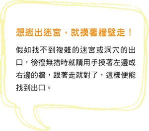 「別擔心,只要沿著一邊的牆走就可以了。不管多複雜的路,都能回到原來的位置。」