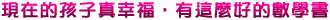 如果你的孩子在學校的數學很糟糕,到了國中還是考不及格。你和他一起陷入茫然、無助的困境。試試看【魔數小子】。短短的,六、七分鐘的時間。或許,他還有一個機會知道,其實數學是很友善的。大家還有溝通的可能。 |