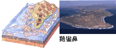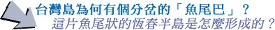 在板塊的堆擠之下,東邊的珊瑚礁先從海底隆起,冒出了岬角「鵝鑾鼻」。尾巴雖長出來了,卻沒分岔。