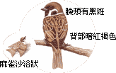 可說是台灣最常見的鳥,是城市三俠中的大俠。常見牠們蹲在沙堆中,努力搖擺身軀、拍打翅膀,原來是想利用沙子去除身上的寄生蟲,稱為「沙浴」。