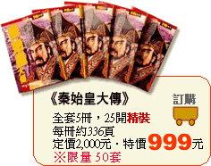 《秦始皇大傳》這部鉅作,其佈局與刻劃細膩動人又充滿文學想像,卻也不偏離史實,彌補了歷史的某些空白。