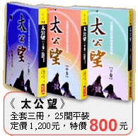 手拿釣竿、安坐於河畔釣魚,白髮蒼蒼的太公望,一直固執地盤踞在一般人的腦海裡,而宮城谷昌光筆下的《太公望》,年齡輕得讓人驚訝,這年輕有活力的呂望形象,不僅吸引了書中所有人──周文王、武王、召公、箕子……的注意,也穿越了31個世紀的時空,攫取現代人目光的焦點。因為他是兵法家的呂望、是具備預見力的呂望,這位傳說中文韜武略兼備的偉大人物,作者把他從神話中解放出來,落實到人性的國度,成為形象鮮活、性格明朗、閱歷超凡的青年呂望。