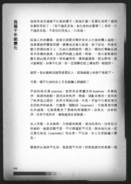 不管那挫折著痛苦著思念著的敘述者,是梁文道還是虛構的角色,還是介於兩者之間的某種扭曲變形或精神原型,文章裡讀著書、記錄著閱讀反思的,總是不折不扣,我們平常認識的那個梁文道。
