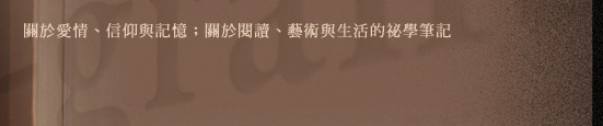挫折著痛苦著思念著的生命,理所當然開放了所有感官的敏銳,迎接並對抗這個世界,於是他自己成了一面多角稜鏡,將通過他的平常混濁的光,折射成鮮麗得令人無法逼視的純粹色彩。